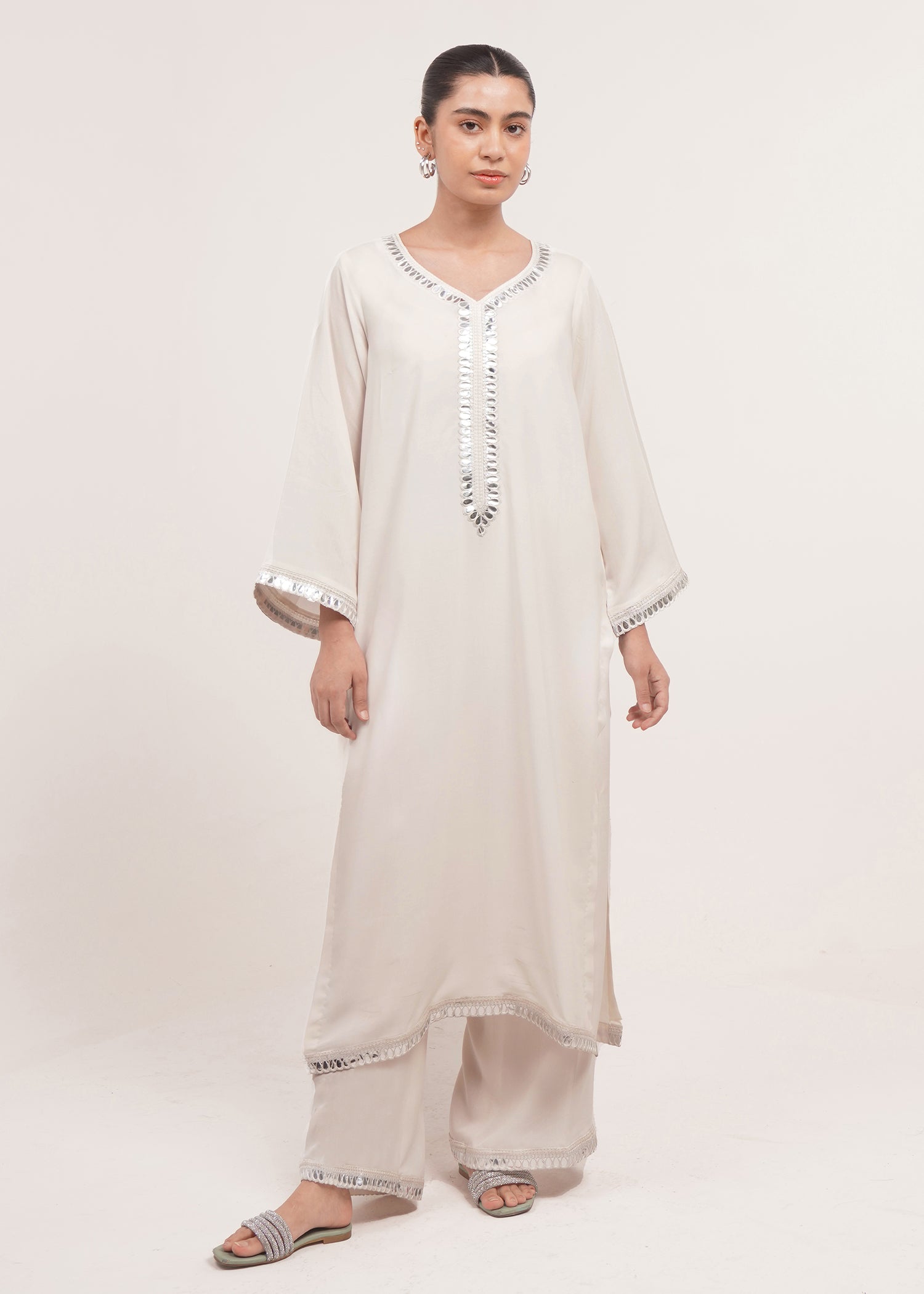 Embroidered neckline, sleeves, and trouser patti. Available in stitched and unstitched options, combining traditional detailing with customizable style.