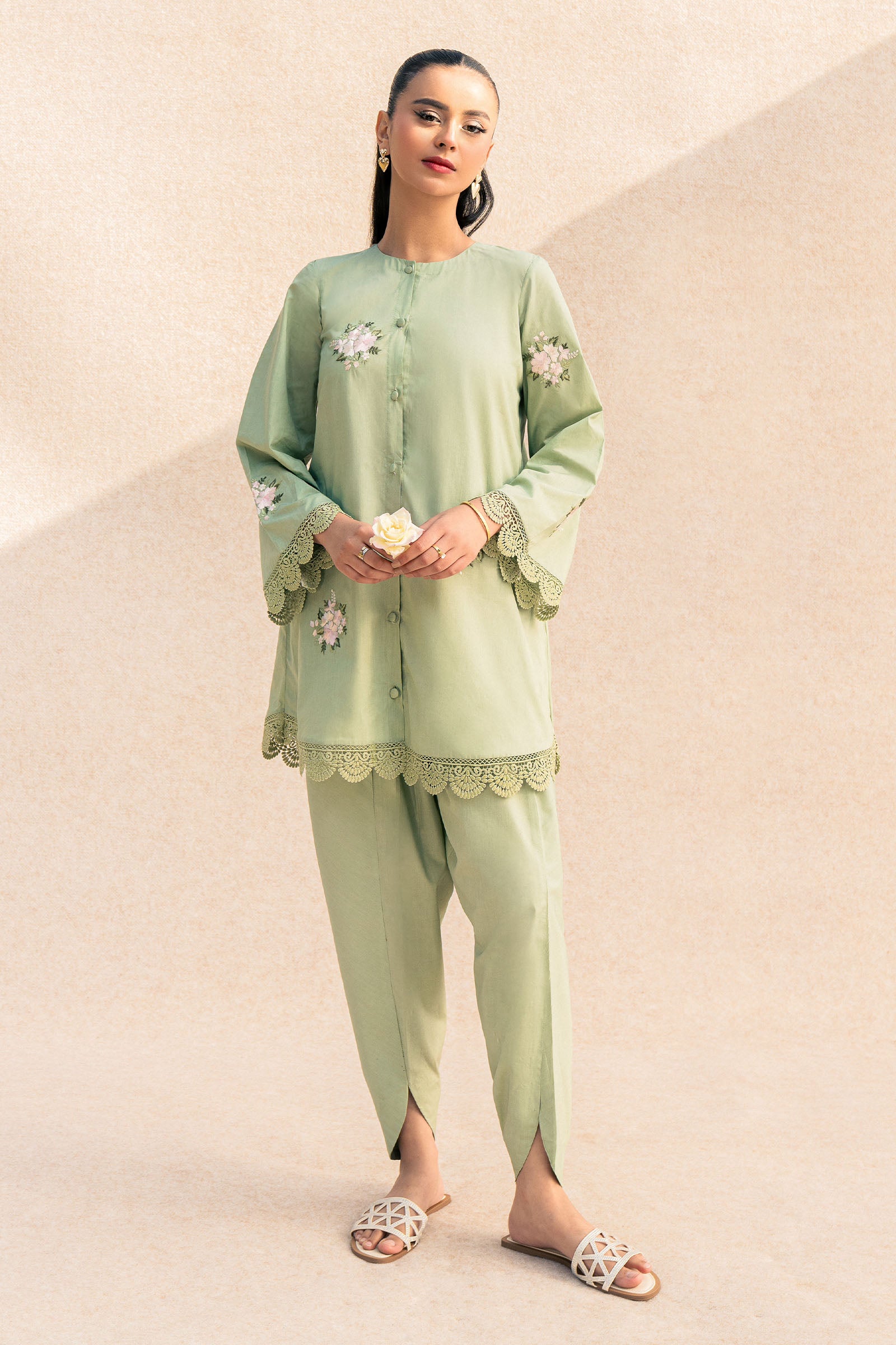 Description: A delicate hue that exudes warmth and grace, this lawn outfit adorned with intricate embroidery, pairs effortlessly with a lawn shalwar for a look that is both refined and comfortable.
